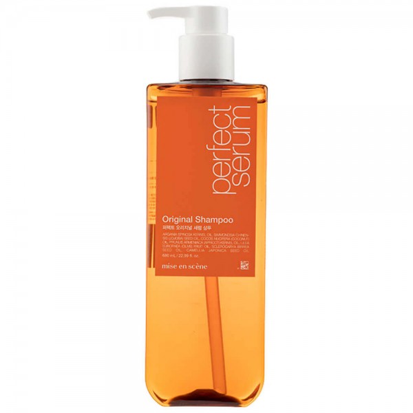 Шампунь Mise En Scene Perfect Serum Original Shampoo создан на базе 7 растительных масел, благодаря чему не только очищает кожу головы от избытка себума, но и ухаживает за длиной волос.